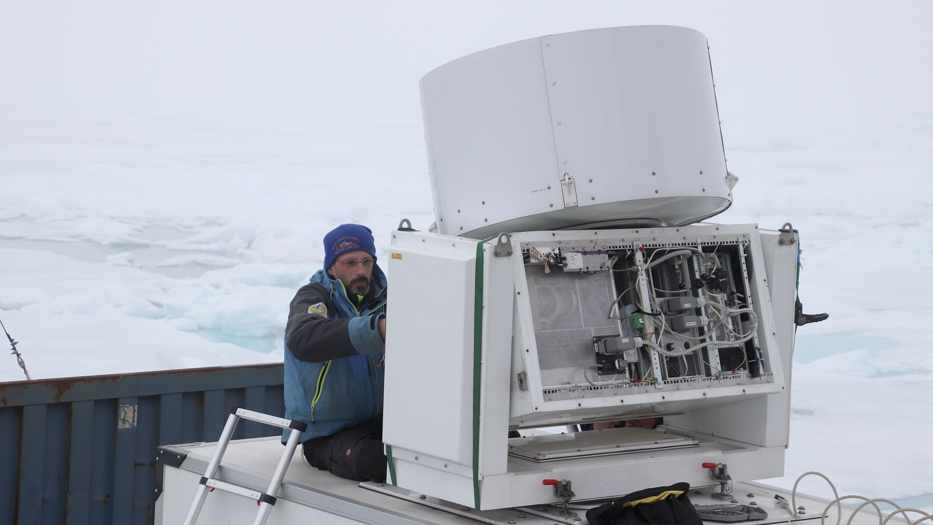 We installed a suite of remote sensing instruments with which to make measurements of clouds and atmospheric structure on Oden: a cloud radar which gives information about the amount of water and ice in the cloud; a laser ceilometer and Doppler Lidar give additional information about the cloud and air motions in the lower atmosphere. A scanning microwave radiometer provides estimates of the total amount of liquid water in the cloud and the vertical variations of air temperature and water vapour concentration. Radiosondes (weather balloons) are launched every 6 hours to provide direct, in situ measurements of temperature, humidity and wind speed from the surface to an altitude of about 25 km.