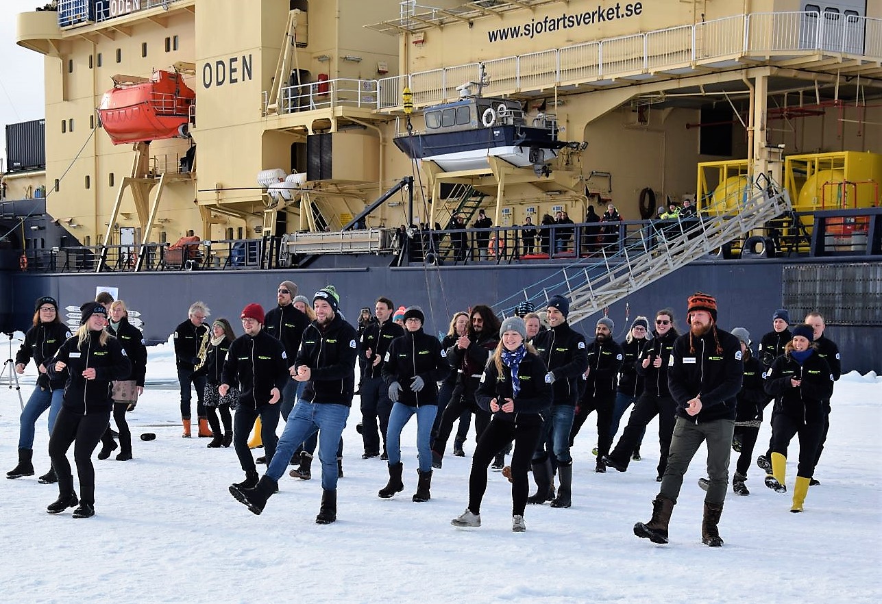 Then everyone gathered on the ice for mingling, group photography and dancing. Led by Sonja Murto, 14 pairs performed a Lindy Hop show, accompanied by Christien on mandolin and Marcus on saxophone.