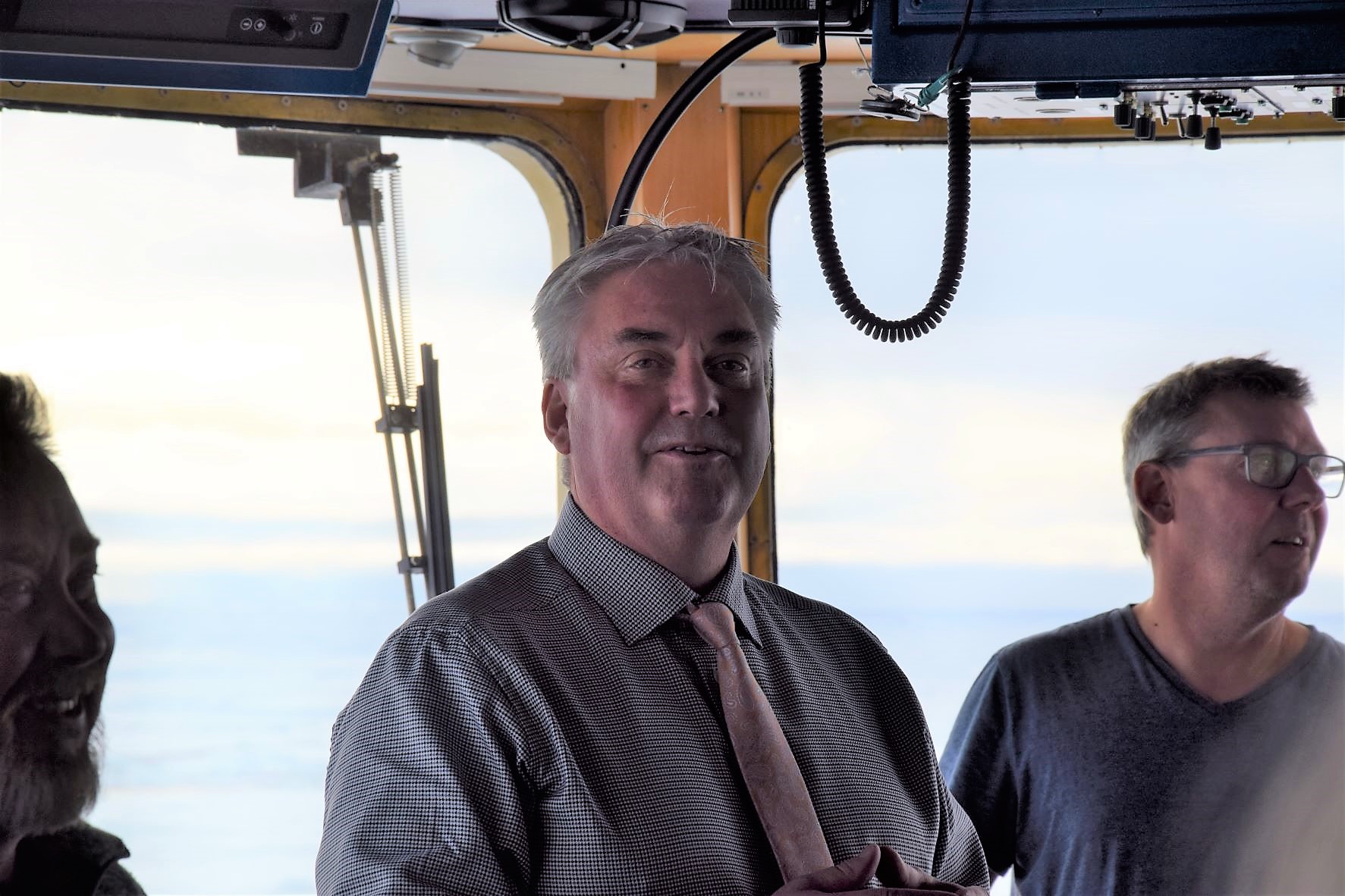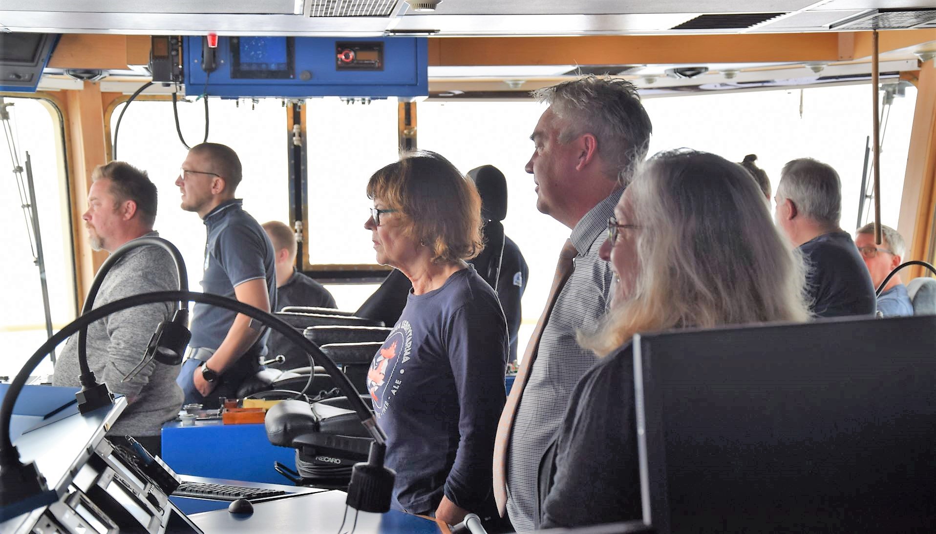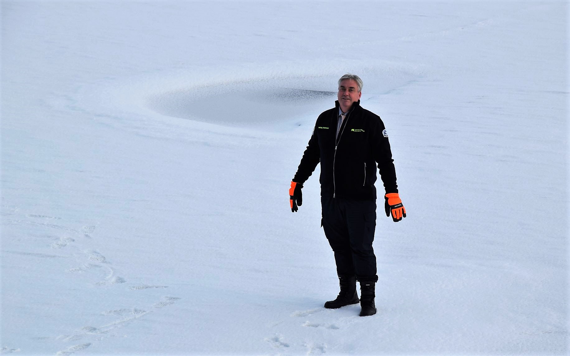 On the bridge, Captain Mattias welcomed us to the North Pole with great cheers. Then Oden was moored by the ice and the passageway was laid out. Polar bear guard Sven went out first, closely followed by the captain.