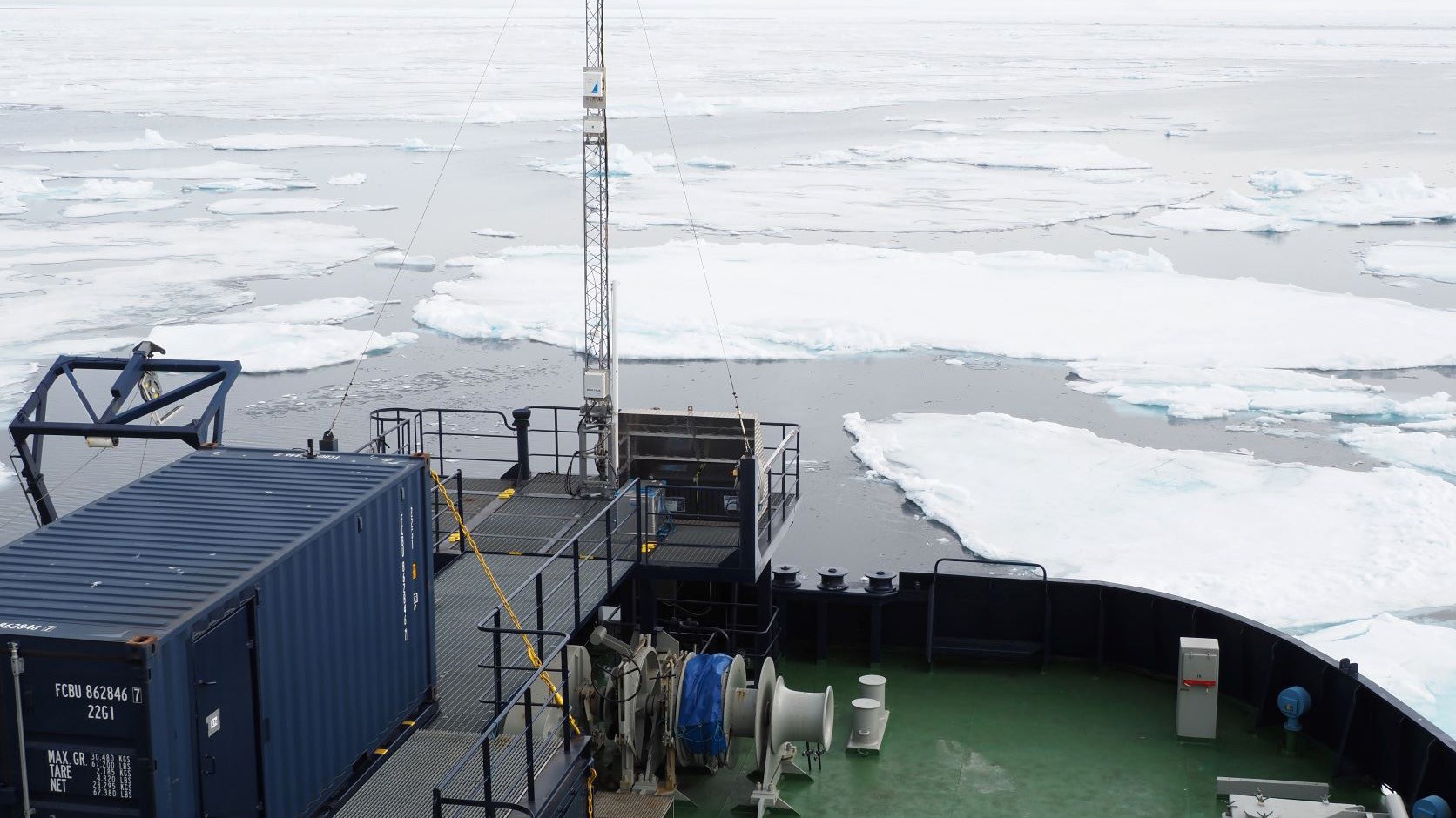 After a week of traveling on open water, we have finally reached the ice edge just north of Svalbard! At Oden, the preparations are constantly ongoing before we enter the ice. The researchers unpack their equipment and do test experiments to see that everything works as it should. Some items may need to be repaired or manufactured on the boat. Niklas Vestin, for example, had to weld a frame to hold cameras that go down to the seabed (picture 1). If the weather allows, the helicopter will take its first turn out towards the ice today and now the blades are in place (picture 2).