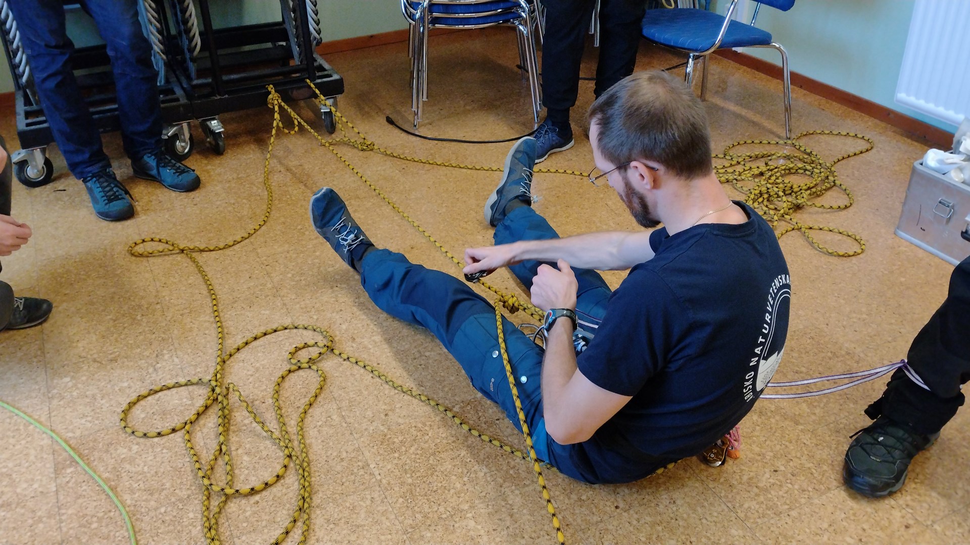 – We have trained first aid to stabilise a leg and to move a person to a stretcher.