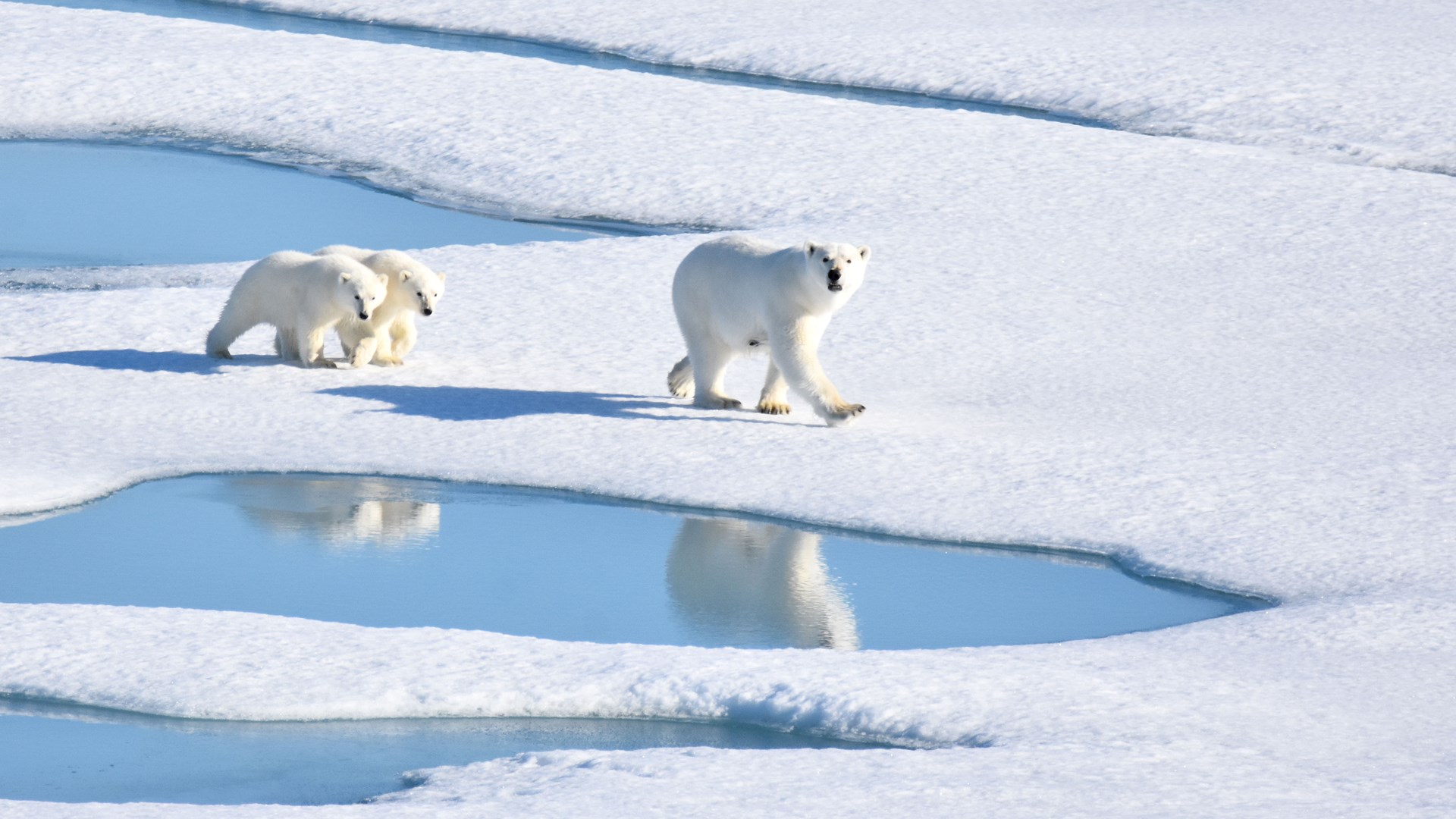 A female polar bear with two cubs. Photo: Åsa Lindgren.