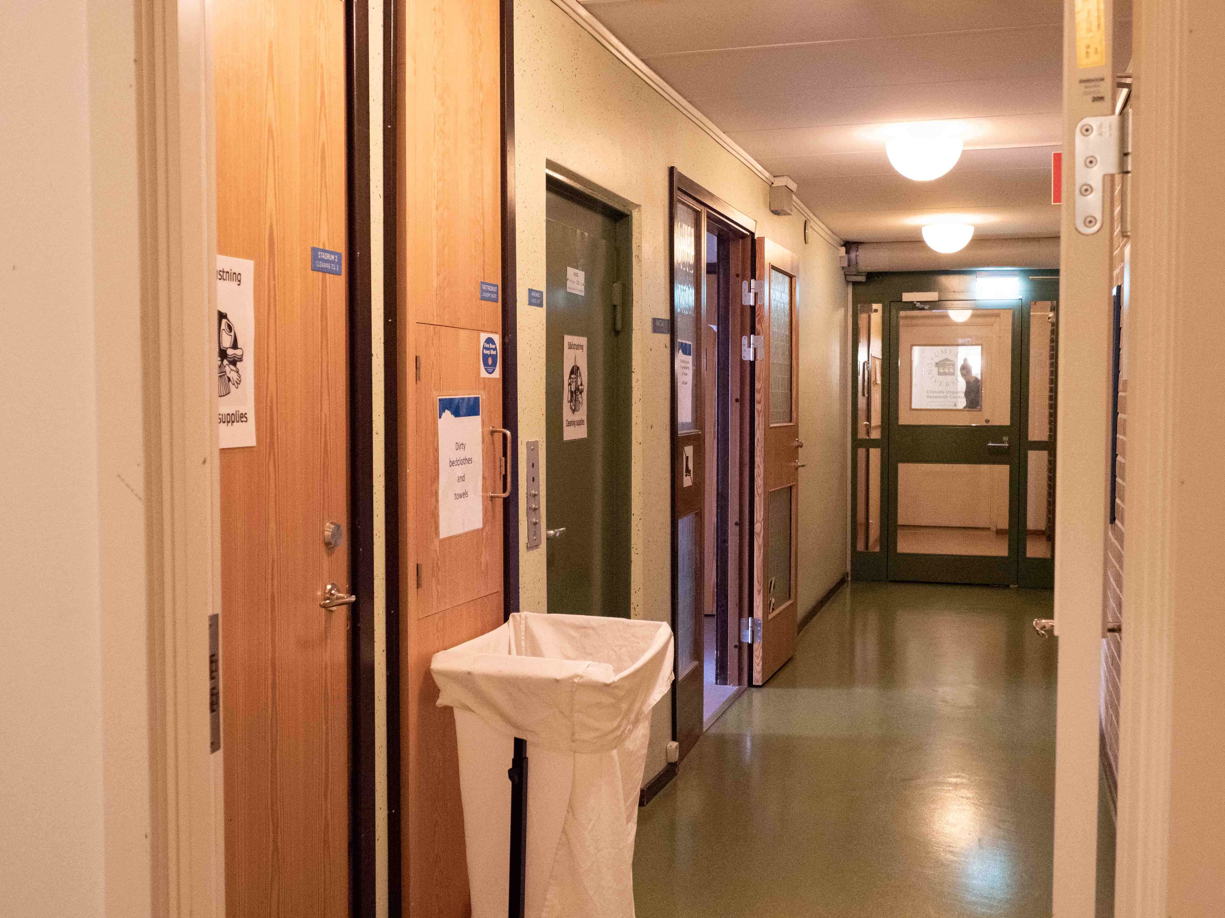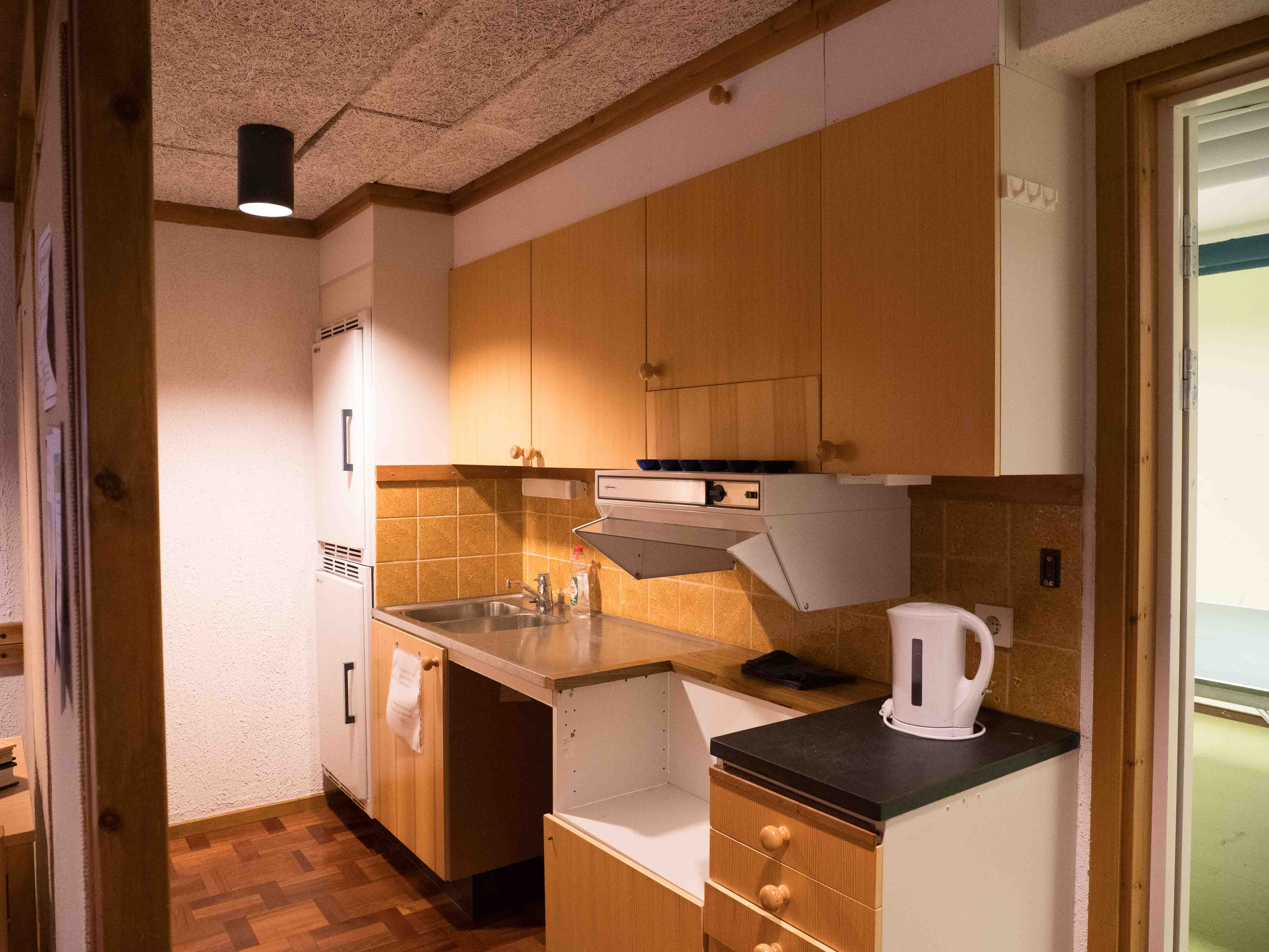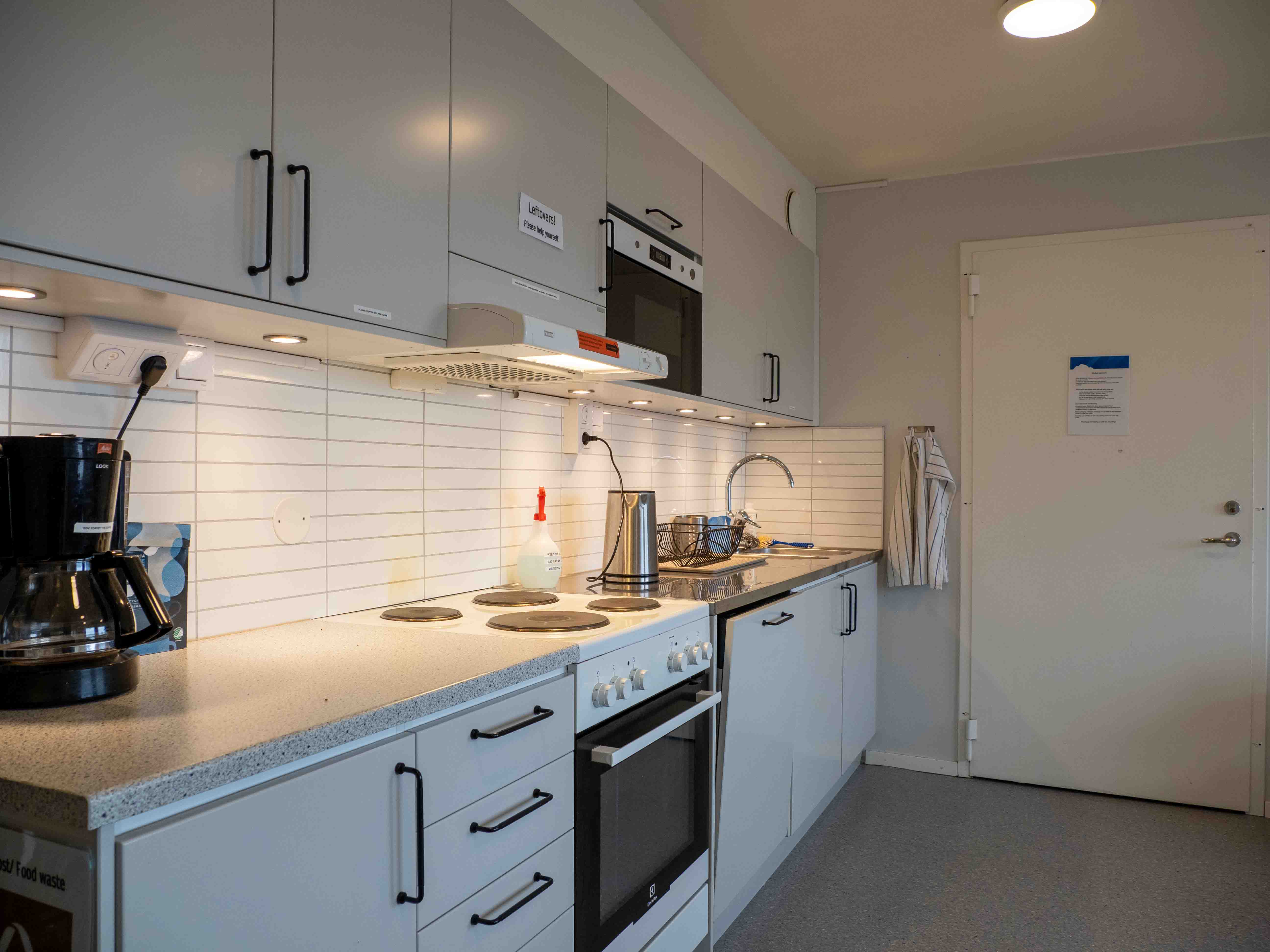 - There are two shared kitchens in the corridor for self-catering, one on each floor. You have access to a pantry, fridge and freezer.