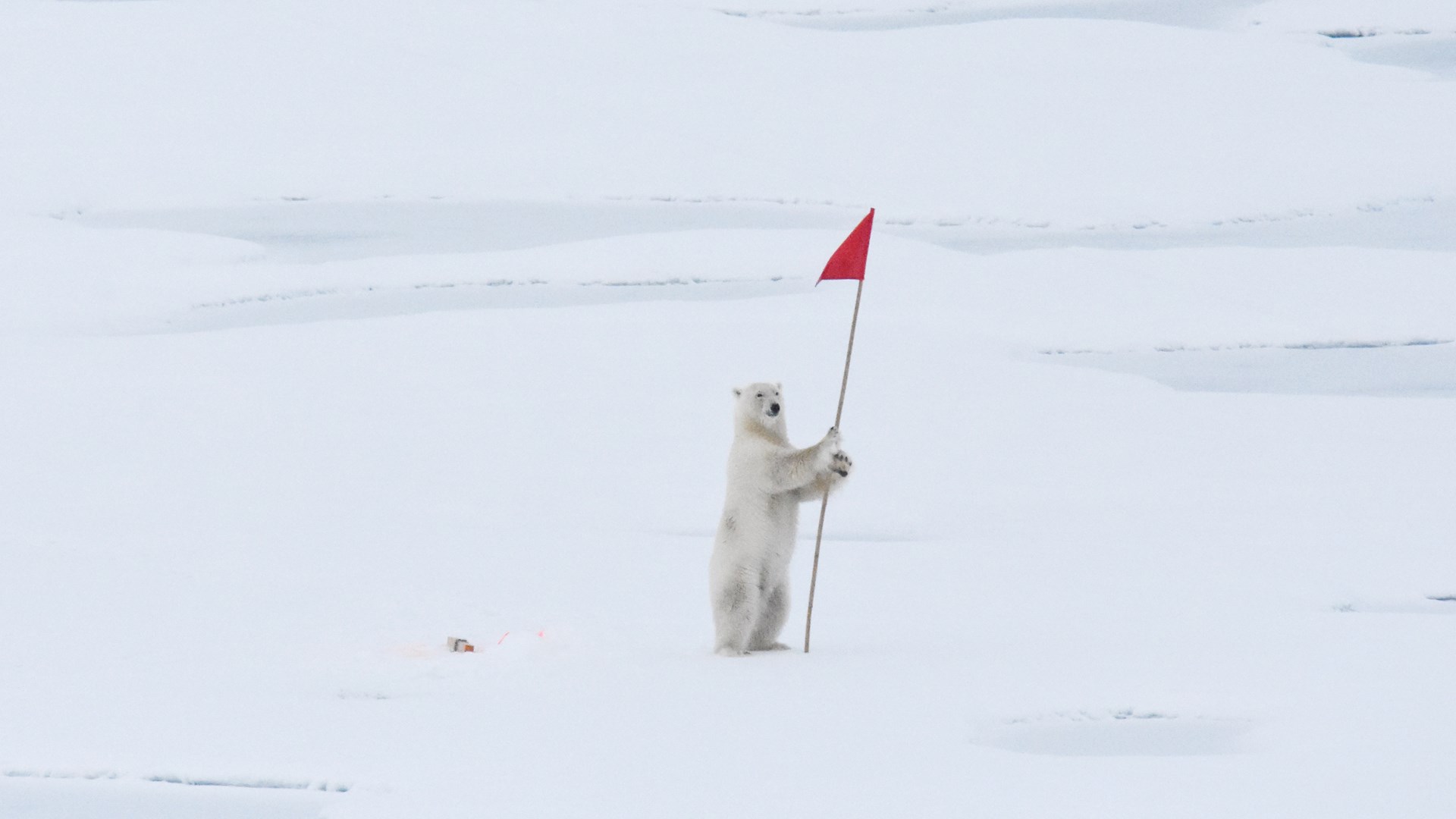 I förrgår kväll kom en ung isbjörnshanne över isen akter om fartyget. Allt gick dock lugnt och stilla och vi kunde ta ombord alla forskare. På isen har vi en stor mätboj som teamet från Alfred Wegener Institut (AWI) satt ut. Den var väldigt intressant och isbjörnen ägnade lång tid åt att undersöka alla kablar och instrument. Speciellt spännande var alla röda flaggor som vi satt ut för att markera utrustning och gångvägar.