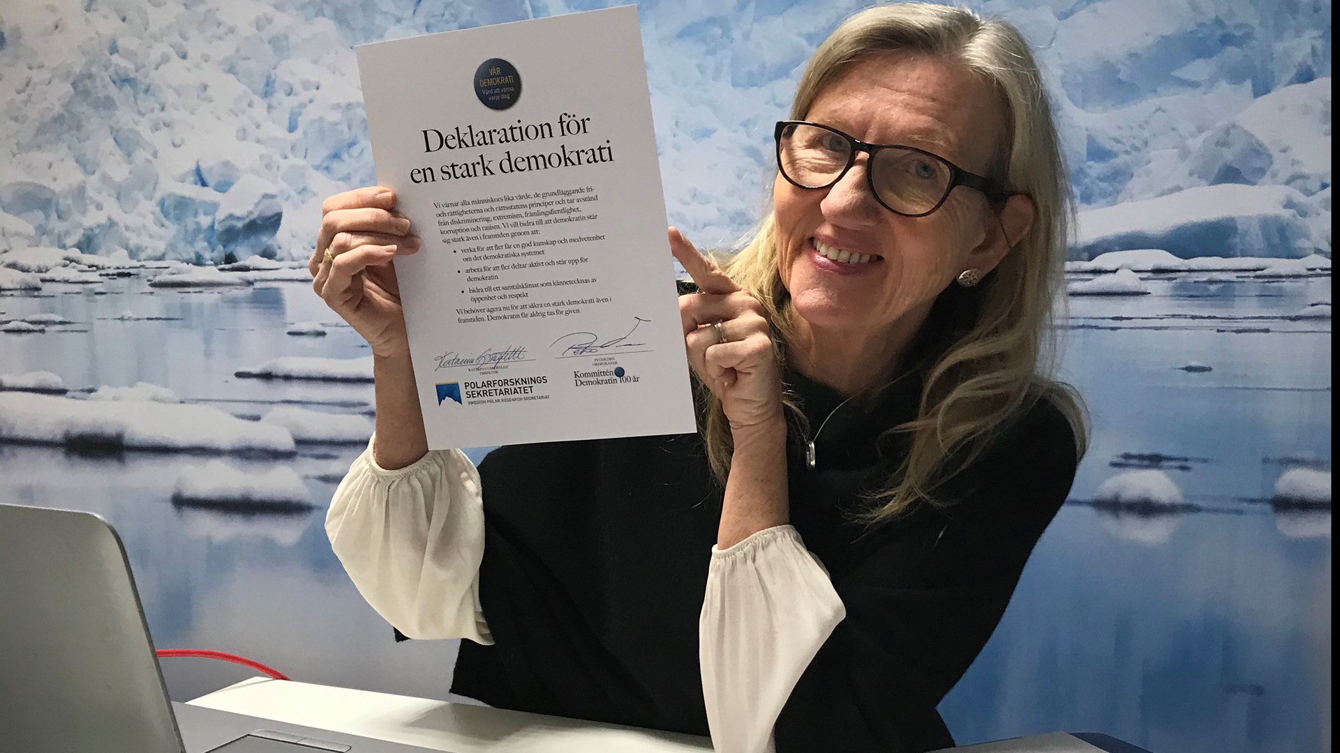 Med deklarationen åtar sig Polarforskningssekretariatet att ha en intern workshop för att till exempel diskutera vad som behövs för att skapa en hållbar arbetsplats ur ett demokratiskt perspektiv. Vi vill också fortsätta arbetet med att öka forskarsamhällets inflytande på vår verksamhet och att forskningsresultat når politiker och beslutsfattare. Slutligen åtar vi oss att anordna ett externt seminarium som handlar om demokrati och globala miljöförändringar.