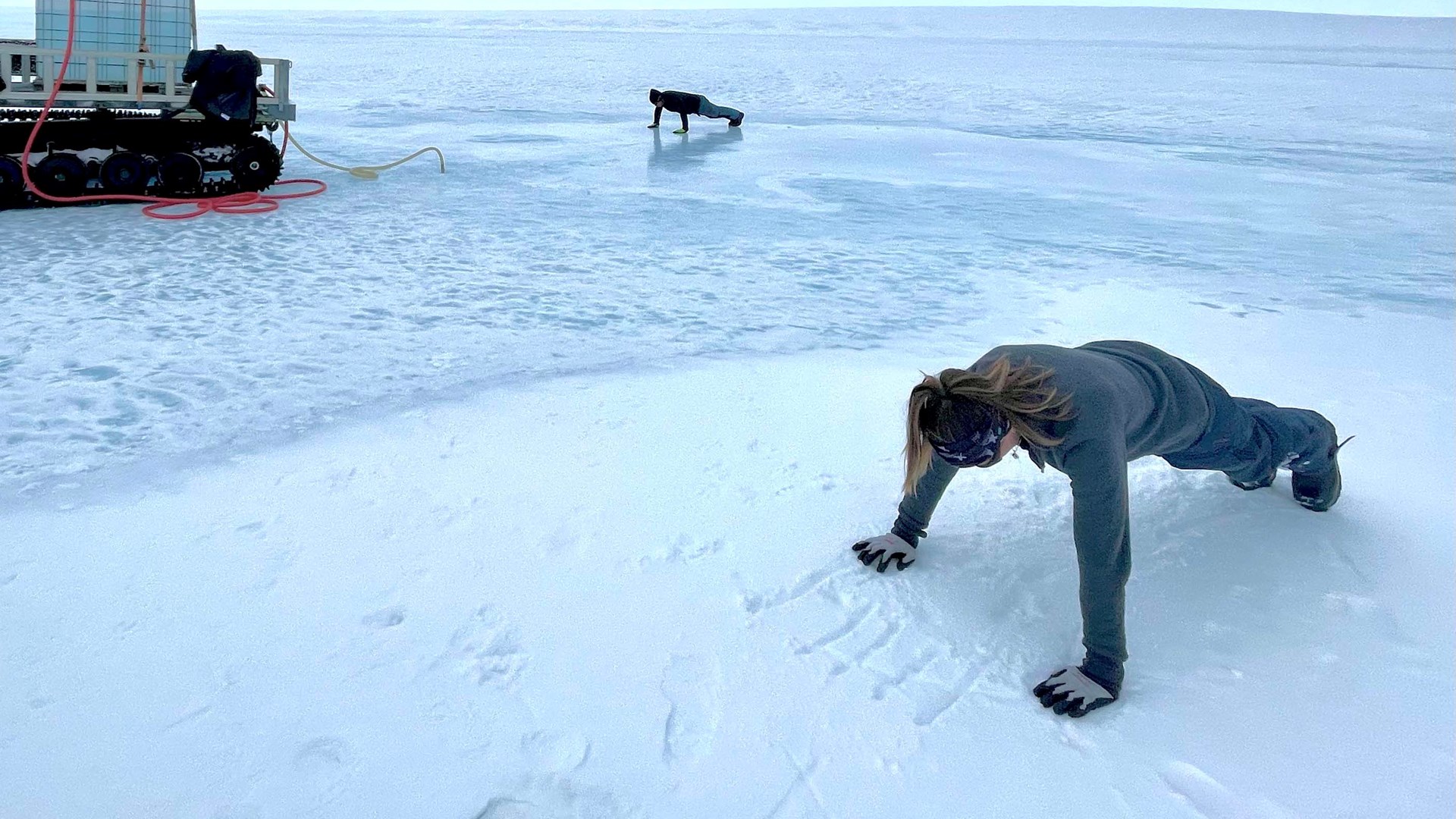 Bild: Att fördriva tid, medan vatten pumpas upp från glaciären. Foto: Andreas Bergström
