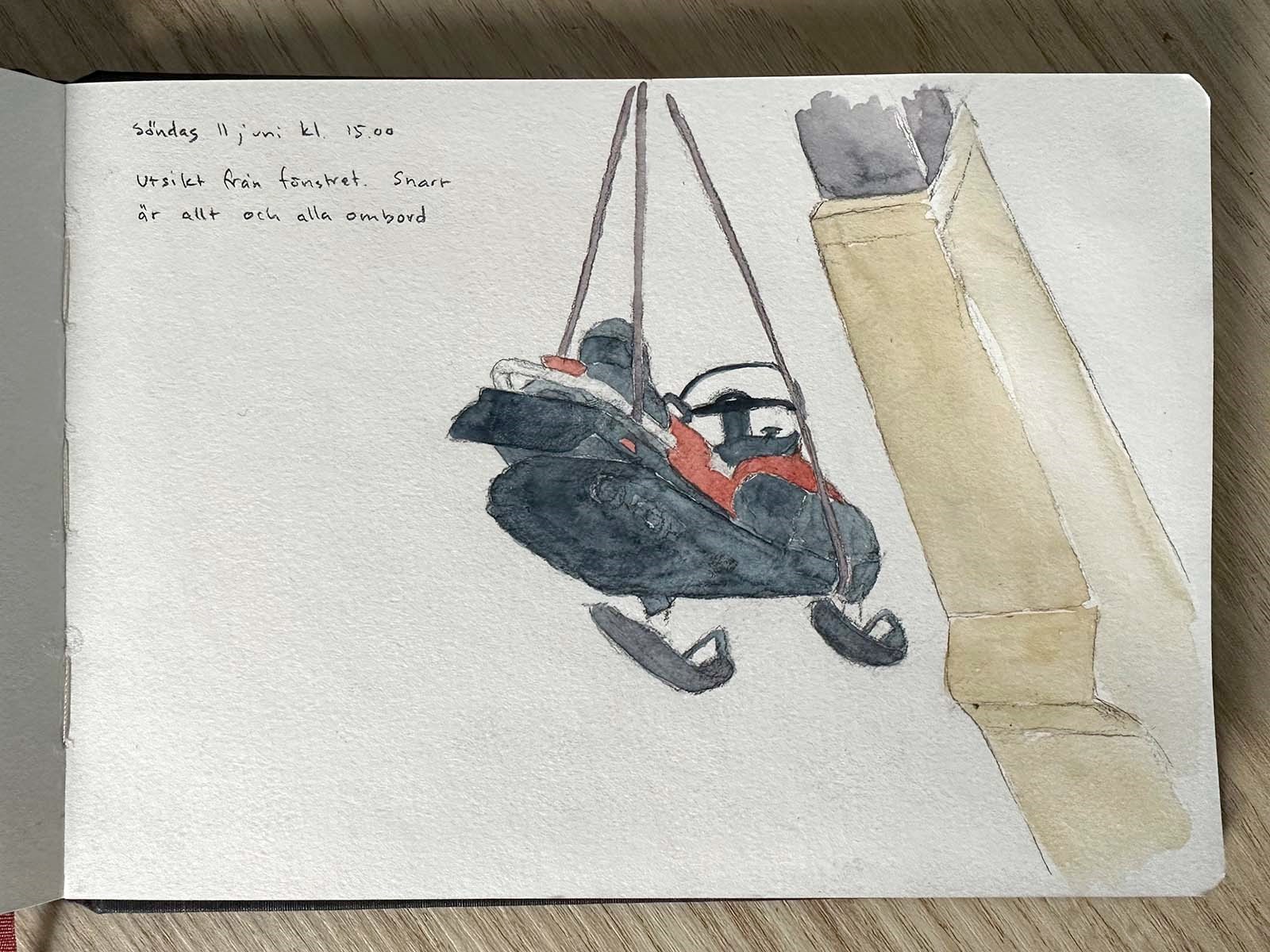 När det är dags att gå ner för klockan-tre-fikat, ser jag genom containerfönstret hur en snöskoter flyger genom luften. Så var allt ombord på Oden. Någon timme senare sätter motorerna igång. Vi är på hemväg, men först ska vi leta skydd inför kommande oväder.