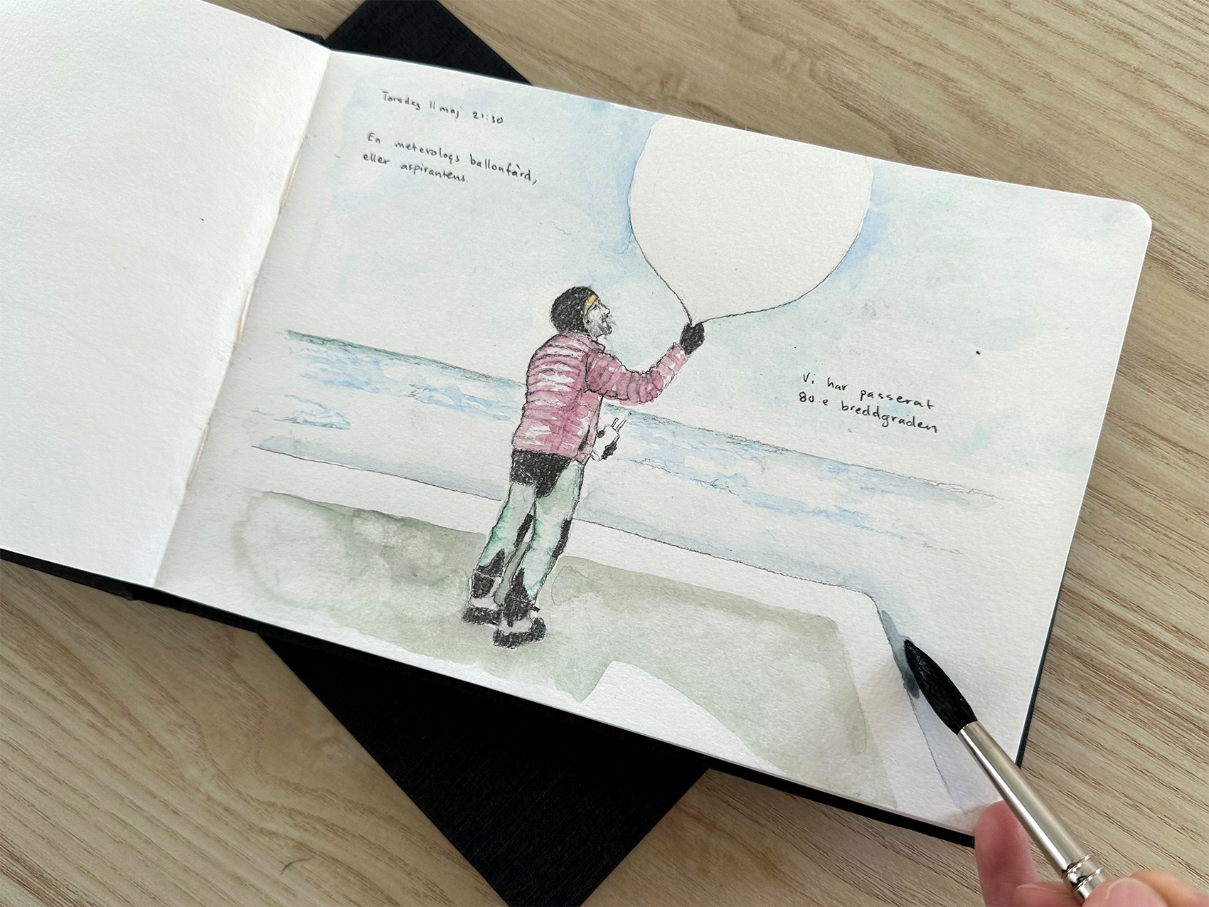 Under tiden jag grubblar och arbetar med detta har två forskarteam varit ute med Sven och helikoptern. Viktiga prover har tagits. Iskärnor har borrats och aerosoler har analyserats. Himlen är klarblå, det blåser hårda vindar från norr och termometern visar -12 grader. Den första truppen var ute i fem timmar. Den andra truppen var ute i två timmar och såg valar. Valar som även började sjunga. Själv sitter jag uppe på Bryggan och diskuterar möjligheten att mäta ett bergs höjd i famnar.