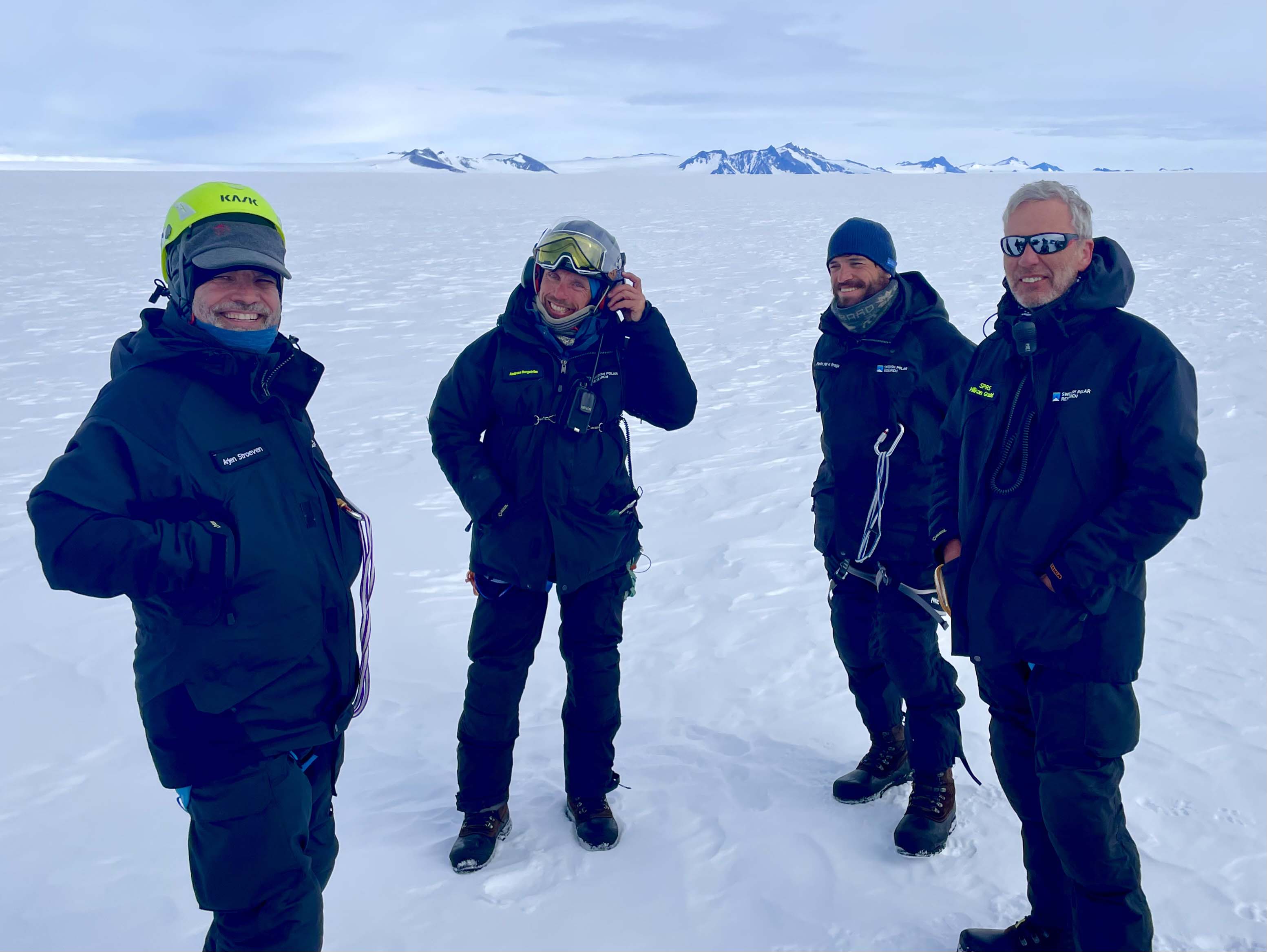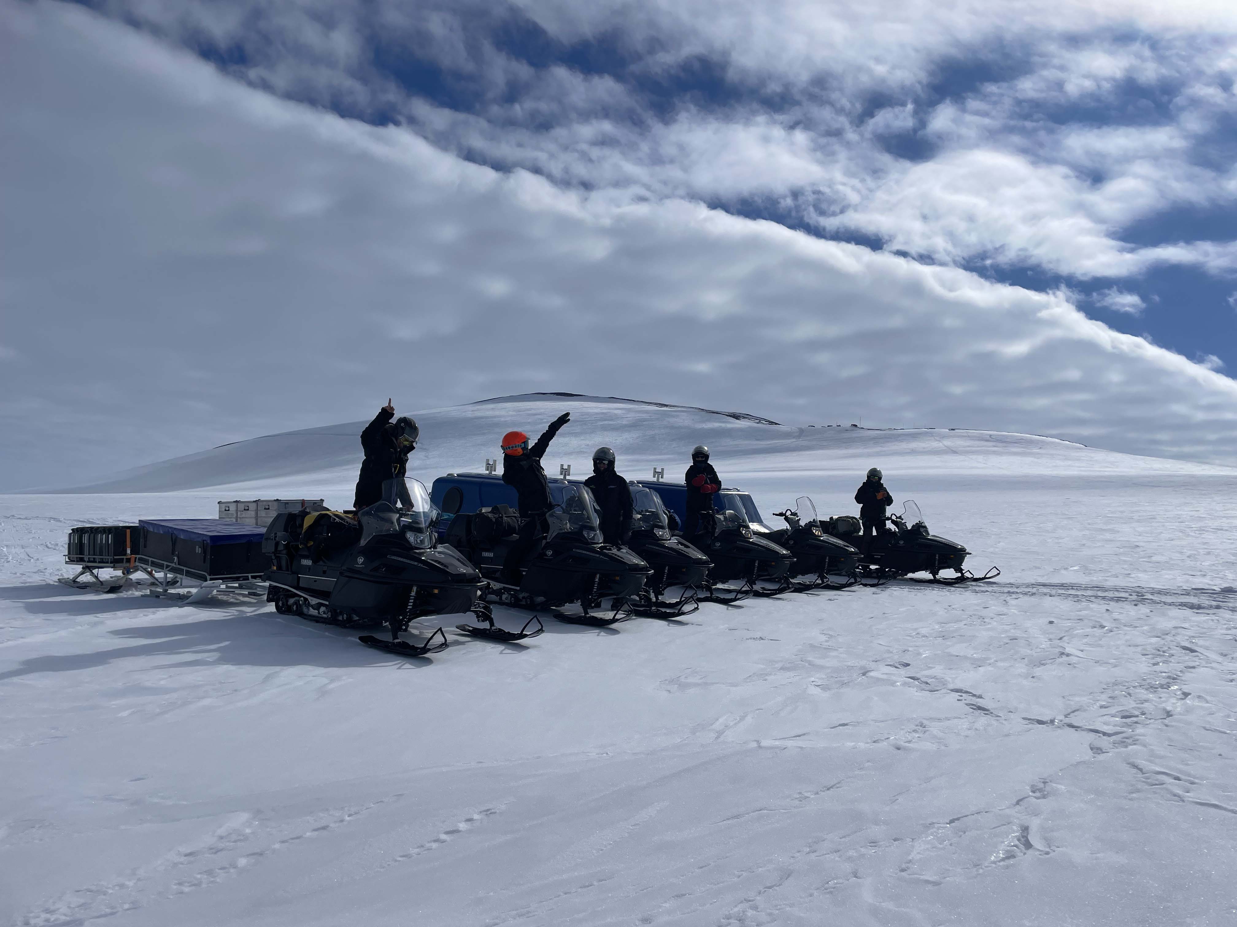 I söndags styrde vår fältexpedition kursen åt sydväst. Vi är sex personer med målet att ta prover i de geologiskt intressant Heimefronfjella och Mannefallknausane under följande tre veckor.