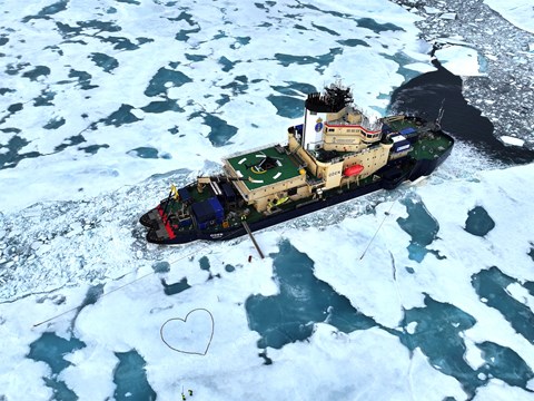 Tillsammans med båtarna placerades också en boj från International Arctic Buoy Programme på isen. Den registrerar lufttryck och temperatur både vid ytan och i luften. Bojens position går att följa live här: iabp.apl.uw.edu/IABP_Maps.