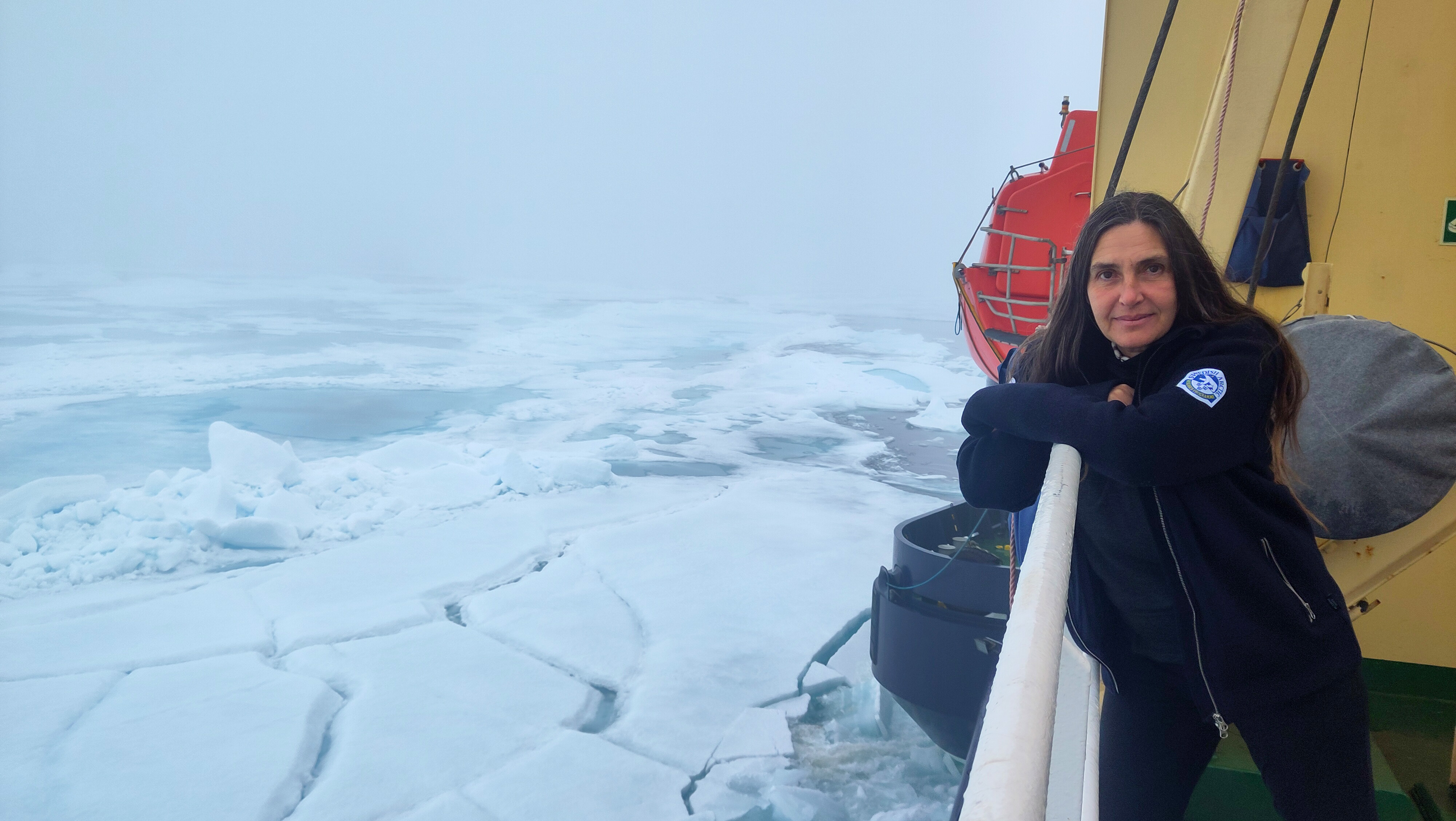 Jag heter Cristina Bernárdez och arbetar som gymnasielärare i Lysekil. Men just nu har jag bytt lektionssalen mot en isbrytare! Jag befinner mig ombord på Oden, som bryter sig fram genom isen vid Lomonosovryggen, mitt i hjärtat av Arktis. Mitt mål med expeditionen är att förmedla polarforskning till mina elever – och förhoppningsvis till många fler. Jag frågar, fotograferar, lyssnar och lär mig allt jag kan om vad forskarna gör och varför.