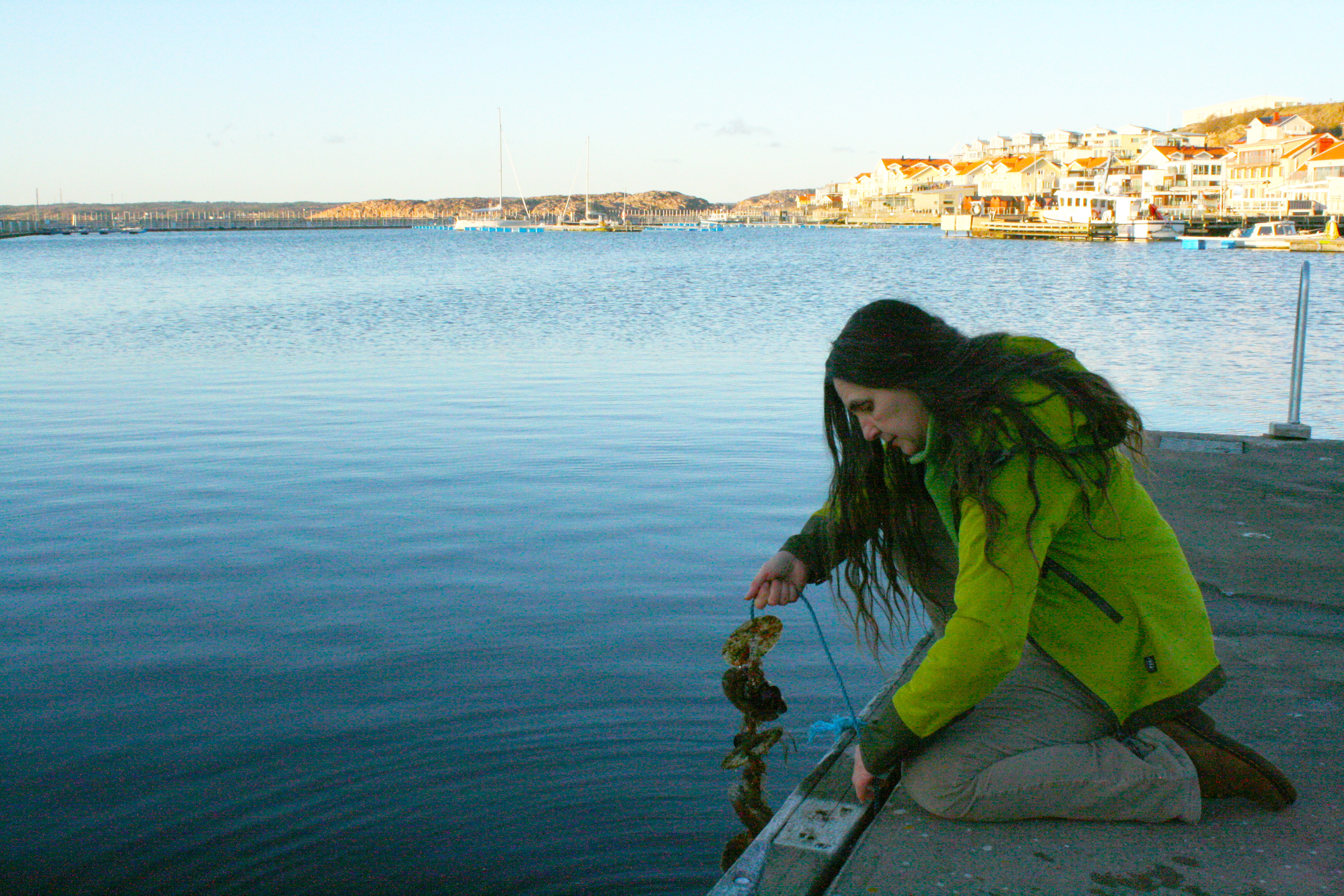Cristina Bernárdez - provtagning av plankton vid skolans brygga. Gullmarsgymnasiet ligger vid havet så eleverna kan genomföra provtagningar där. Foto: Niklas Larsson.