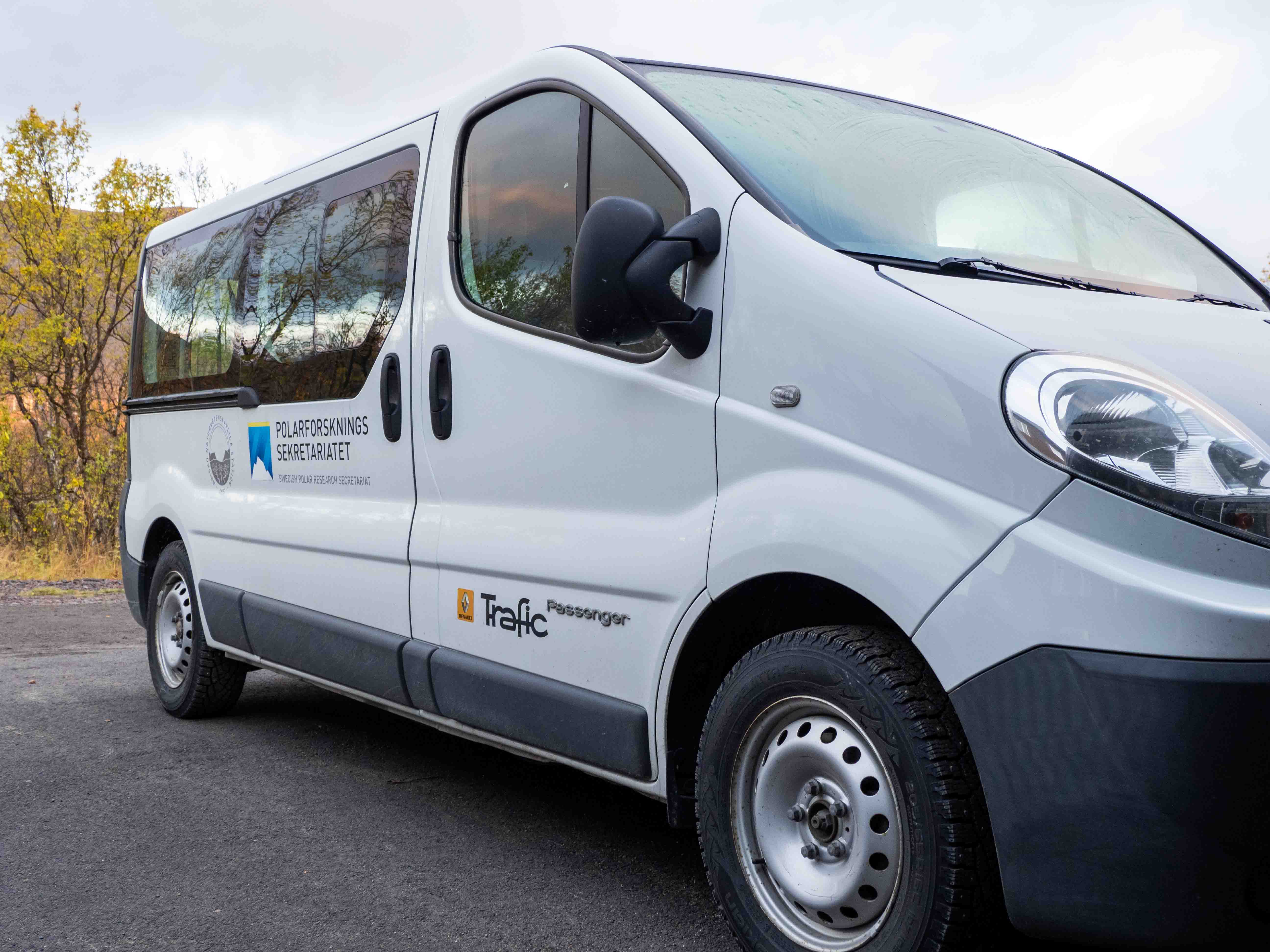 Det finns tre bilar att hyra på stationen: två kombibilar och en minibuss. Hyrbil bokas på plats i receptionen. Samordna gärna användningen av bilarna, så att så många som möjligt kan få tillgång till dem. Dessa bilar är tänkta att bokas från dag till dag, så om du behöver garanterad tillgång till bil eller för en längre period under ditt besök, rekommenderar vi att du hyr bil på Kiruna flygplats.