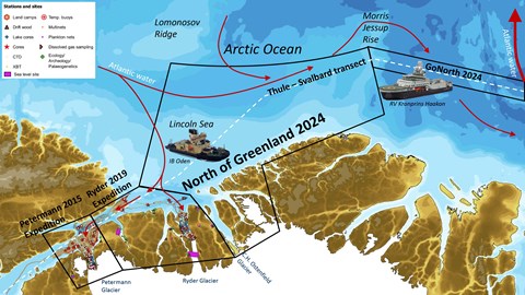 Temat Norra Grönland: Ett Jord-Hav-Ekosystem observatorium – GEOEO bygger på arvet från internationella forskningsexpeditioner, projekt och nätverk under det senaste decenniet som SWERUS-C3, Petermann 2015, Ryder 2019 och EU-PolarNet. Inom såväl temat som expeditionen kombineras fartygsbaserade och landbaserade projekt med fokus på kustområden som ligger i anslutning till de undersökta marina områdena. Temat pågår mellan 2022 till cirka 2026.